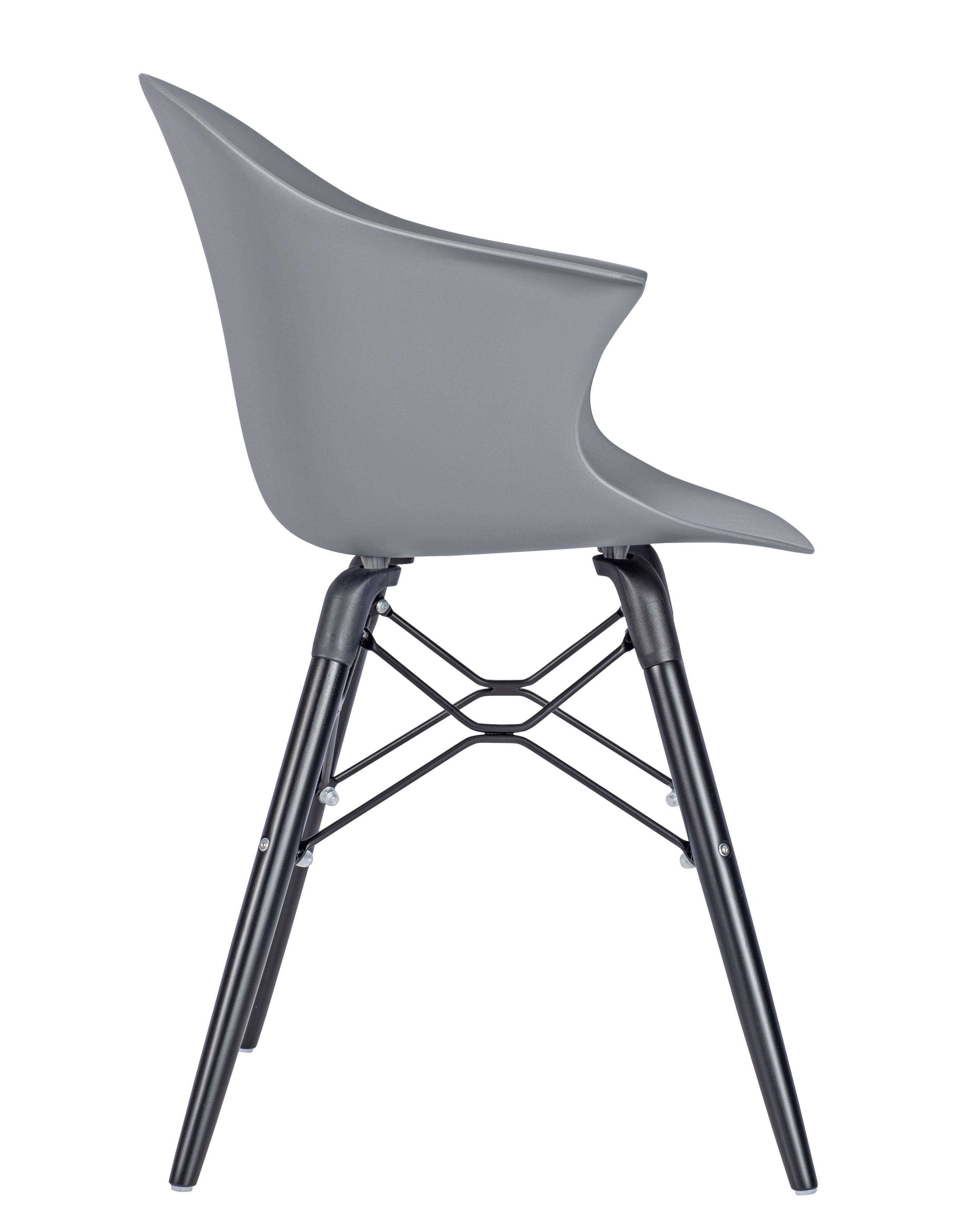 This chair frame is manufactured with beech legs polished black and steel decorative supports.