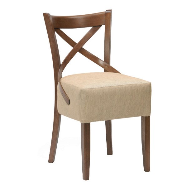 The MN2622 chair features a fully upholstered seat, providing exceptional comfort for guests. The backrest is uniquely designed with two polished beech wood strips arranged in a criss-cross pattern, which elegantly curves around the sides and secures to the frame. This distinctive design not only enhances the chair’s aesthetic appeal but also offers robust support, making it suitable for various hospitality settings. Choose from a wide selection of hard-wearing fabrics, vinyls, and faux leathers from our hospitality collection. All upholstery options meet BS5852 CRIB 5 fire safety standards, ensuring compliance for commercial environments.