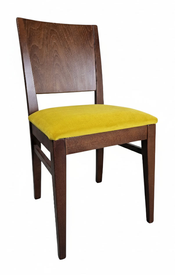 This contract-standard wooden side chair combines durability with comfort, featuring an upholstered seat pad in either C&L Manhattan or Panaz Highland contract fabrics. Fabric cards are available on request. The wooden frame can be finished in any of our standard wood polishes to suit your interior.
